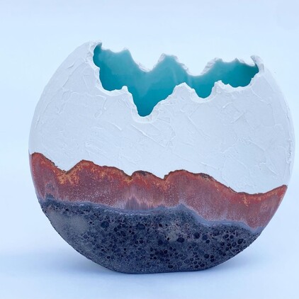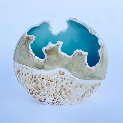 With a rich and thoughtfully curated color palette, Ana’s flowing glazes bring depth and harmony to every artwork. Each piece is carefully planned, considering not only how each glaze will complement the others, but also how they will interact and flow together as a whole.